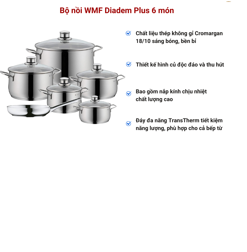 Bộ 3 nồi WMF Astoria gồm 2 nồi vung kính (24cm & 20cm) và 1 quánh 16cm vung kính
